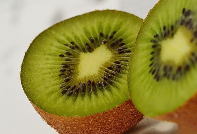 Плоды киви богаты витаминами: PP; Е; С; группы В; А.