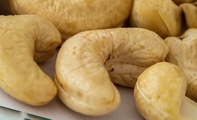 Сырые кешью - оболочка кешью состоит из 2 плотных частей. Первая – маслянистая и ядовитая. Она может вызвать сильные ожоги, привести к отравлению организма. Прежде чем попасть на прилавки орехи обрабатываются вручную специалистами. Удаляются все части скорлупы. После этого происходит термическая обработка, чтобы удалить остатки ядовитого масла. Его высушивают при температуре 45 градусов.
