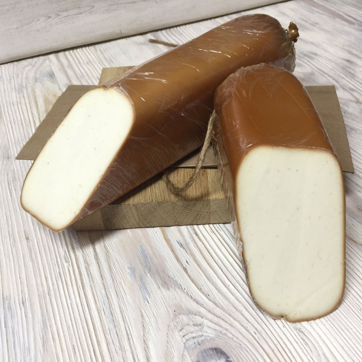 Полумягкий подкопченный сыр в виде батона колбасы появился в России в середине XX века и прочно вошел в рацион питания. Колбасный сыр обладает нежной текстурой и ярким, пикантным вкусом копчености. Дополнительный плюс – продолжительный срок хранения. Состав продукта: нежирный сыр для плавления или творог; полутвердый сыр; молоко сухое; масло сливочное; соль; специи; соли-плавители; вода. Копченый вкус изделию придается натуральным копчением или жидким дымом.